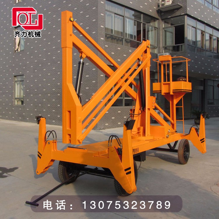 拖車曲臂式升降機(jī):可以掛在汽車上,與汽車同步,適合野外高空作業(yè)。升降方式:1、用380-220V電源2、用電源不方便,可以用電瓶驅(qū)動(dòng)升降。外型美觀,行走方便。